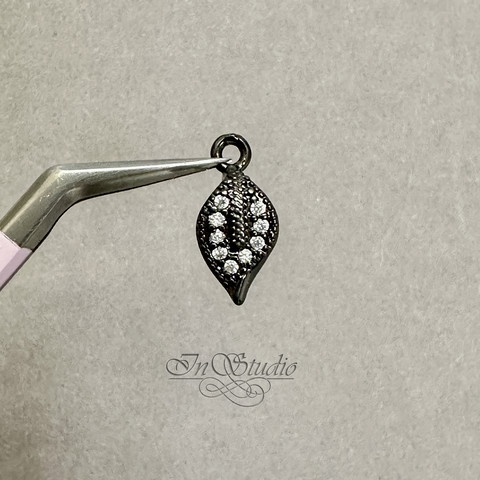 Слегка разжимаем скобу, помещаем кулон внутрь так, чтобы штырьки (усики) попали в отверстие с двух сторон.