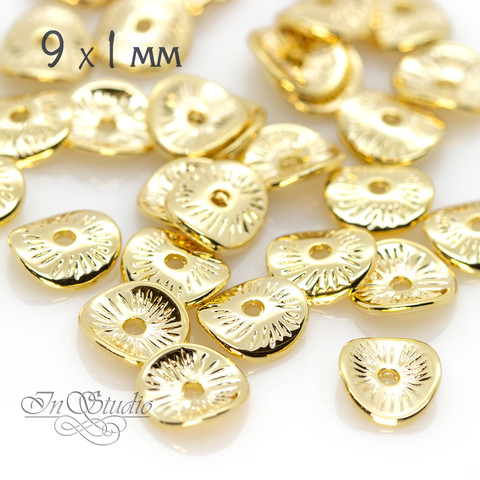 Спейсеры разделители 9 мм 10 штук гнутый позолоченный диск