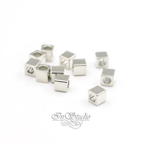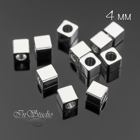 Бусины металлические кубики 4 мм разделители спейсеры родий