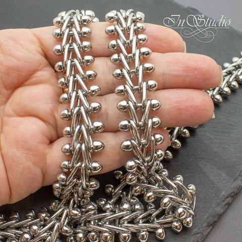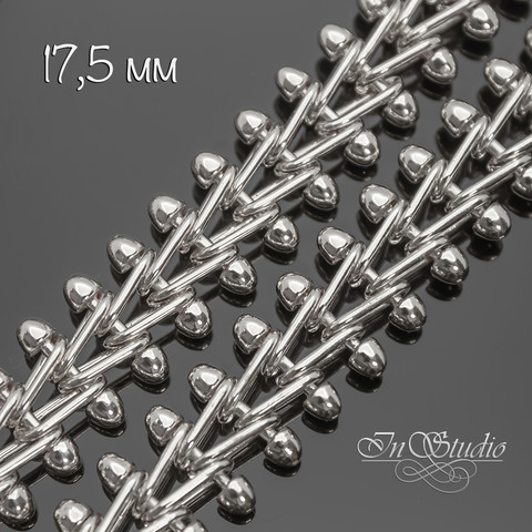 Цепь широкая AKIRA 17,5 мм родий плоский жгут