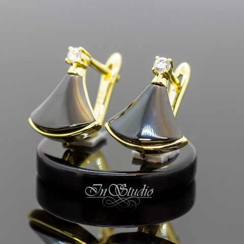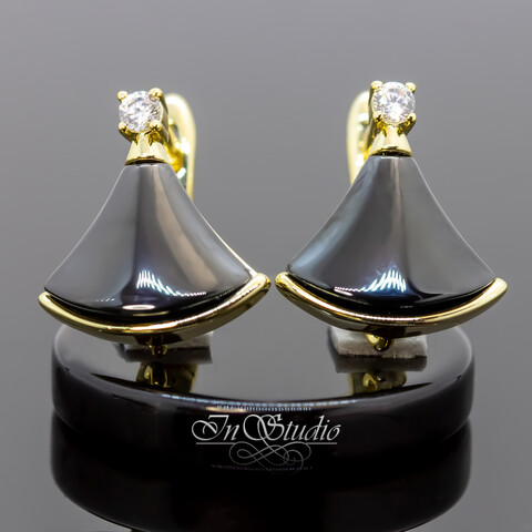 Вставки из глянцевой черной керамики делают основы для серег очень изысканными..