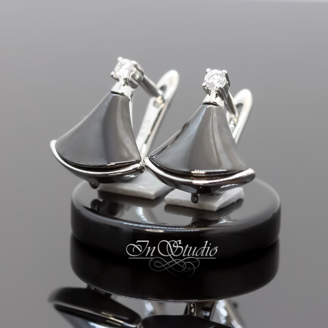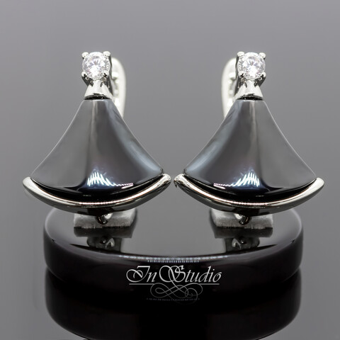 Вставки из глянцевой черной керамики делают основы для серег очень изысканными..
