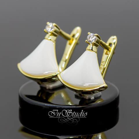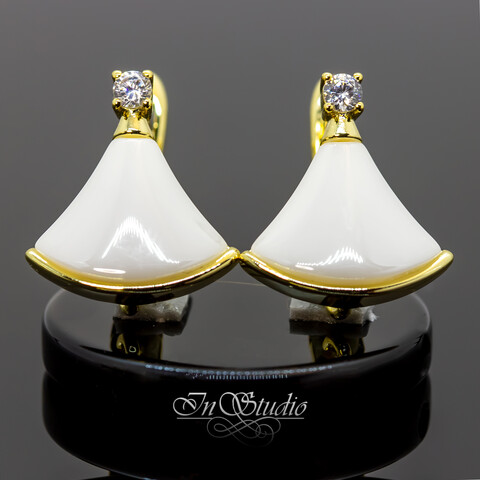 Вставки из глянцевой белой керамики делают основы для серег очень изысканными..