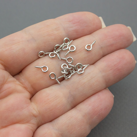Штифт винтовой 8 мм с петелькой 10 штук родий