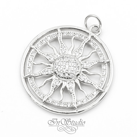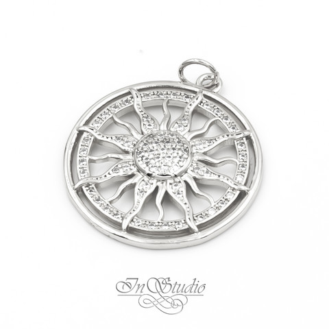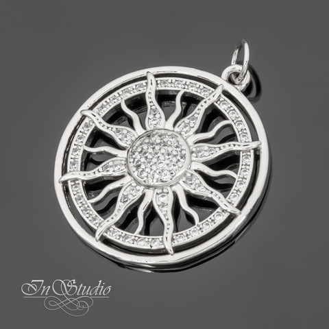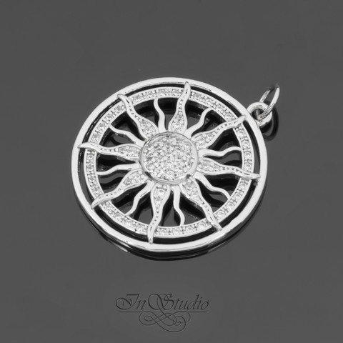 Подвеска Солнце 24 мм родий инкрустация фианитами