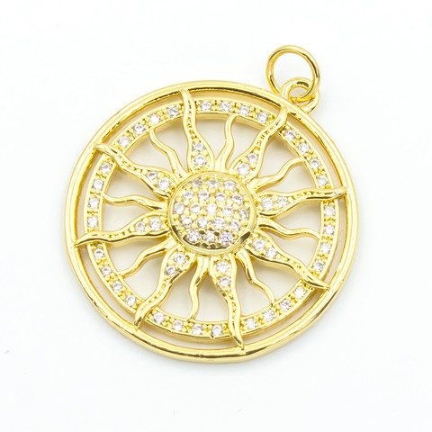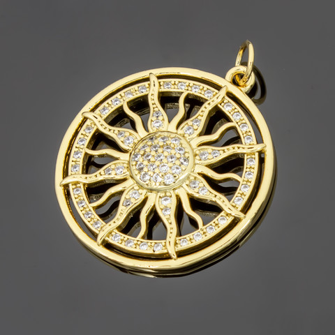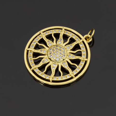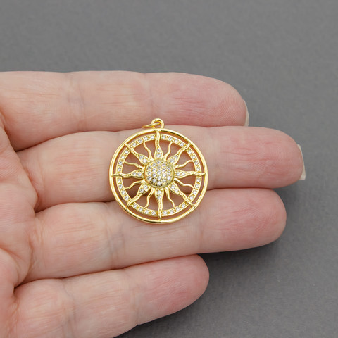Подвеска Солнце 24 мм позолота инкрустация фианитами