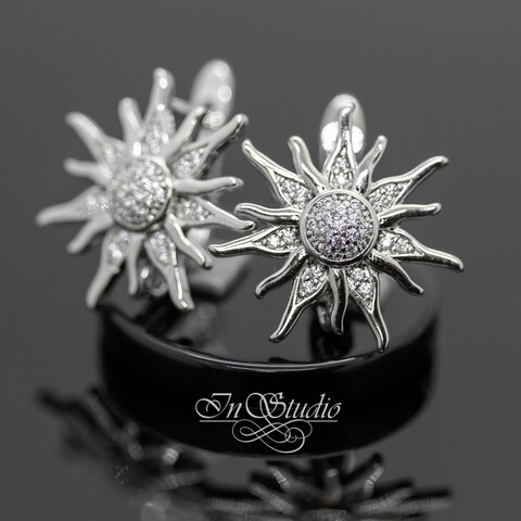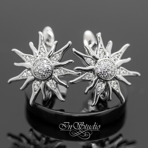 Инкрустированы фианитовыми вставками как по центру, так и в самих лучах.