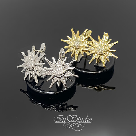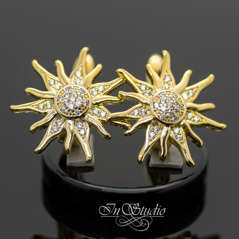 Швензы СОЛНЦЕ позолота с фианитами