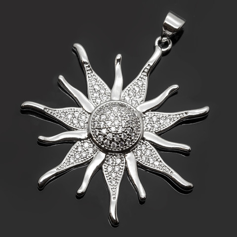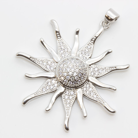 Подвеска Большое Солнце 35 мм родированная с фианитами