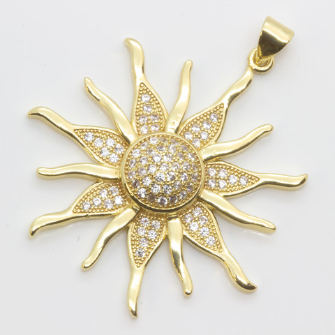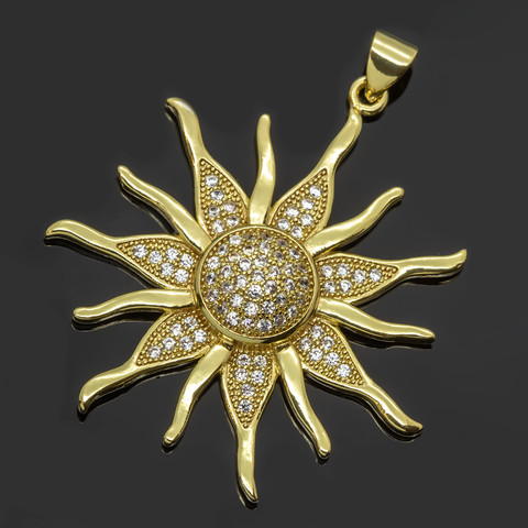 Подвеска Большое Солнце 35 мм позолоченная с фианитами
