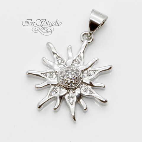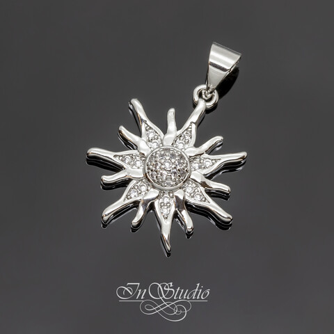 Подвеска Маленькое Солнце 18 мм родий с фианитами