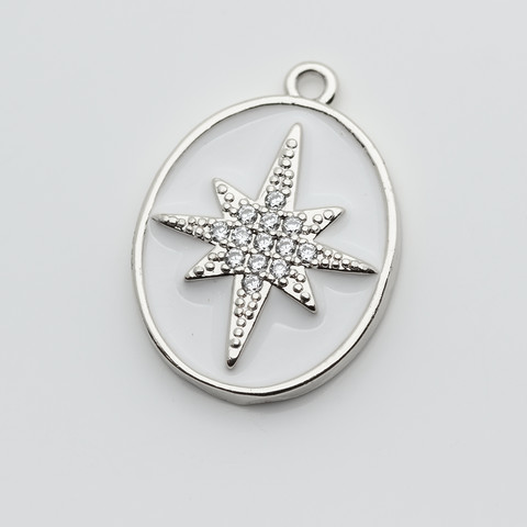 Подвеска кулон Роза ветров белая эмаль фианиты родий