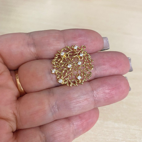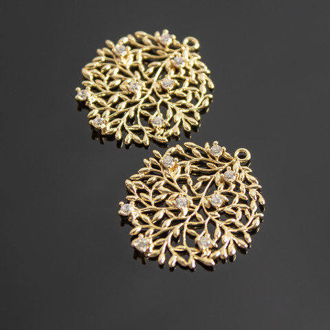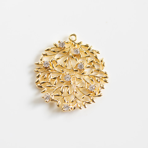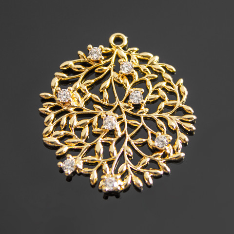Подвеска ажурная Цветущий куст 24 мм кулон позолота фианиты