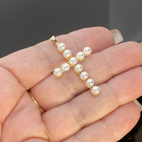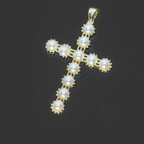 Подвеска кулон Крест 29х24 мм жемчуг позолота