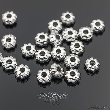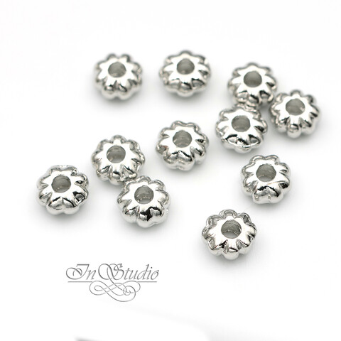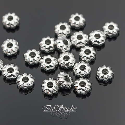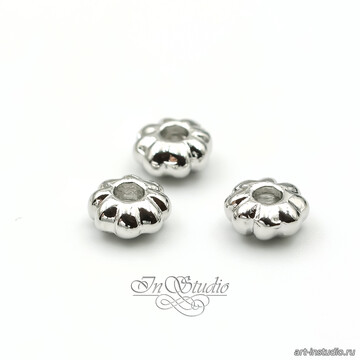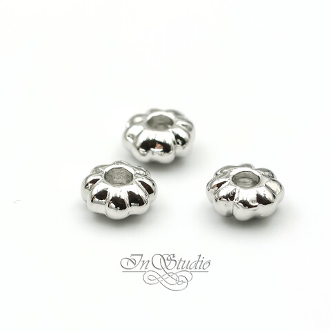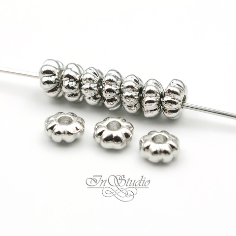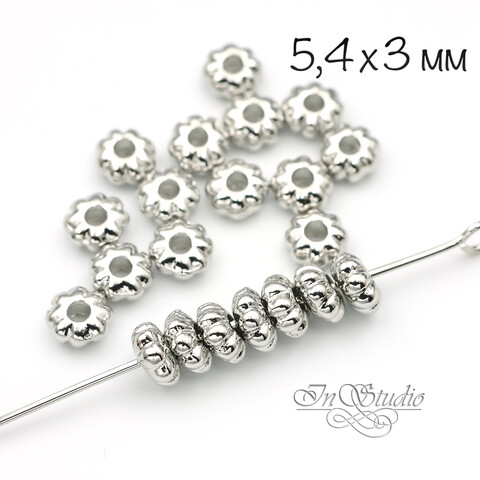 Бусины разделители 5,4х3 мм фактурные спейсеры родий