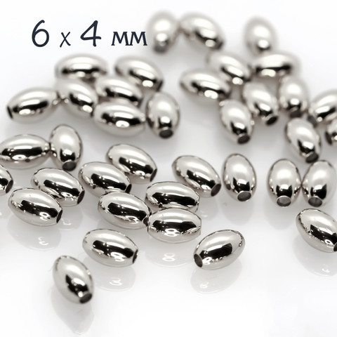Бусины бочонки 6х4 мм разделители рис родированые