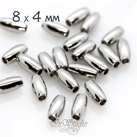 Бусины бочонки 8х4 мм разделители рис родиевое покрытие