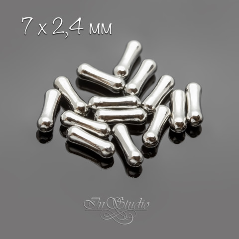 Бусины разделители трубочки 7х2,4 мм покрытие родий