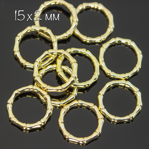 Коннектор колечко для бижутерии Бамбук 15 мм позолота