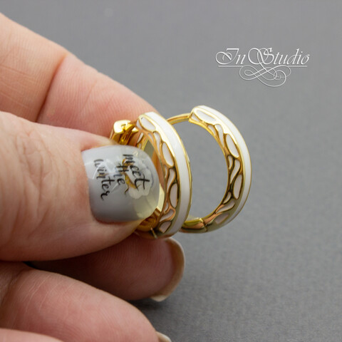 Швензы конго 20х4,5 мм белая эмаль и позолоченое покрытие