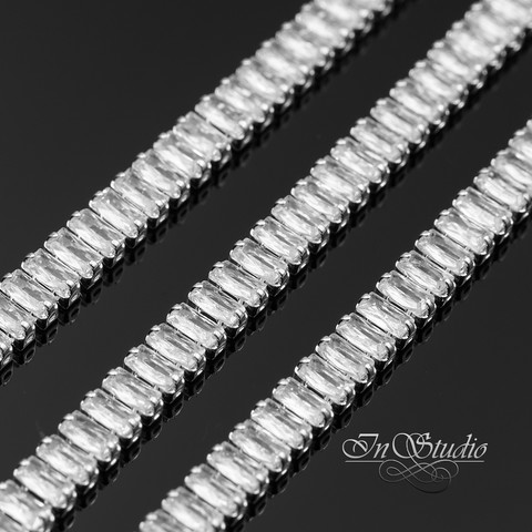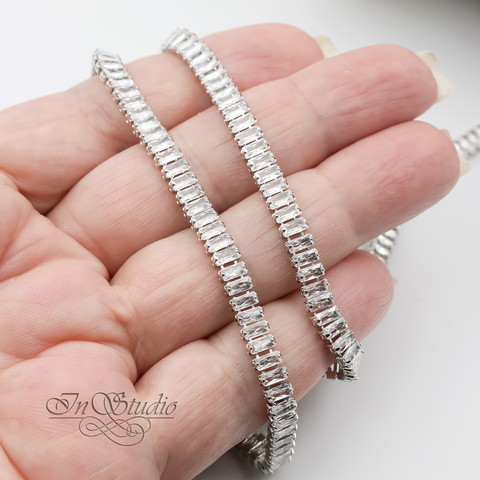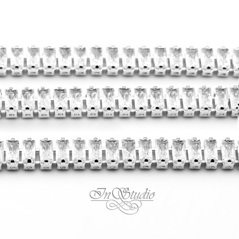 Звенья с вставками крупных прямоугольных фианитов "в лапках".