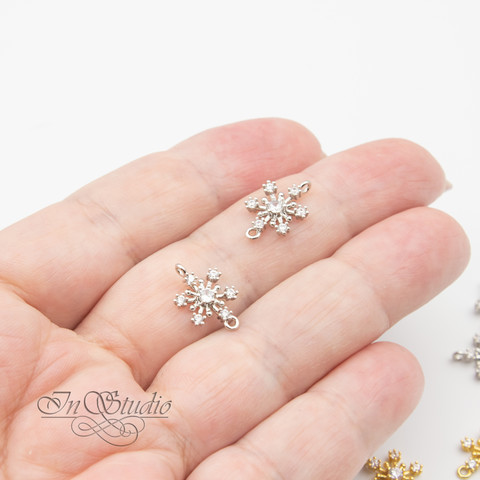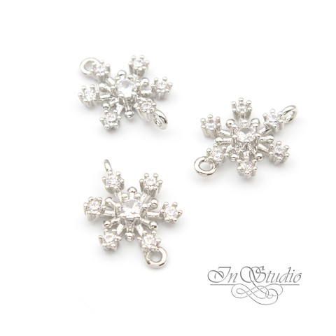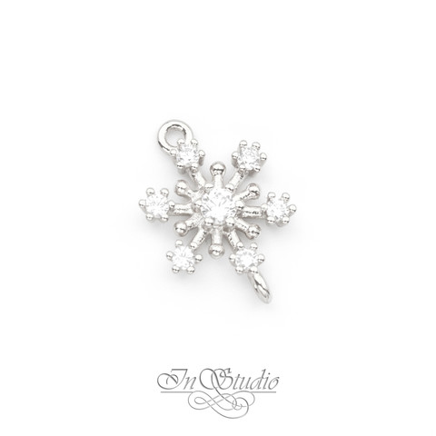Коннектор 15х10 мм Снежинка с инкрустация фианитами , латунь с родиевым покрытием.