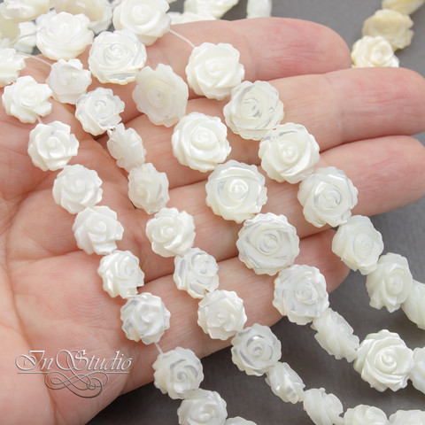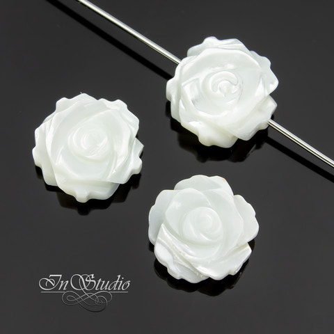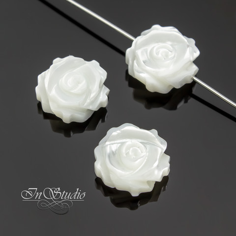 Выполнена в виде перламутровой розочки, размером 12 мм.