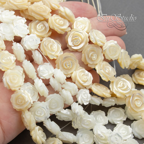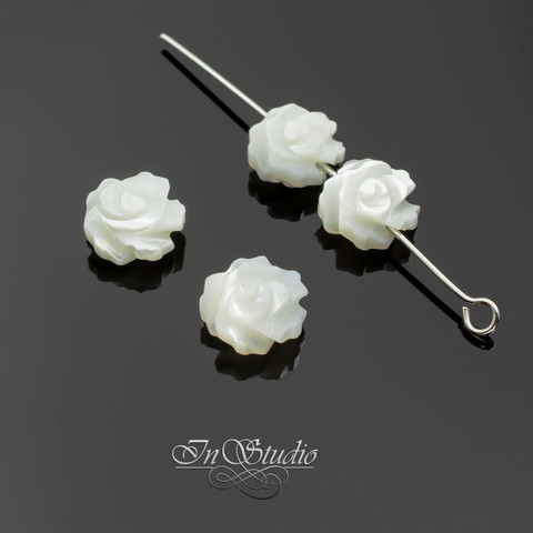 Перламутр белый 10 мм резная бусина Роза