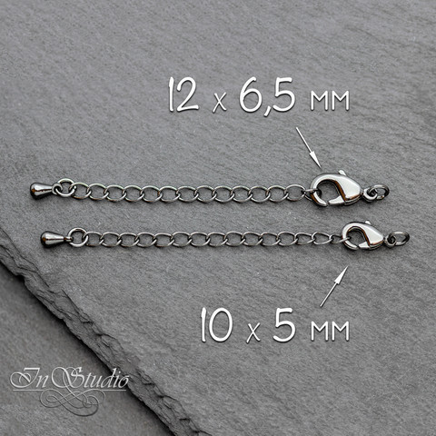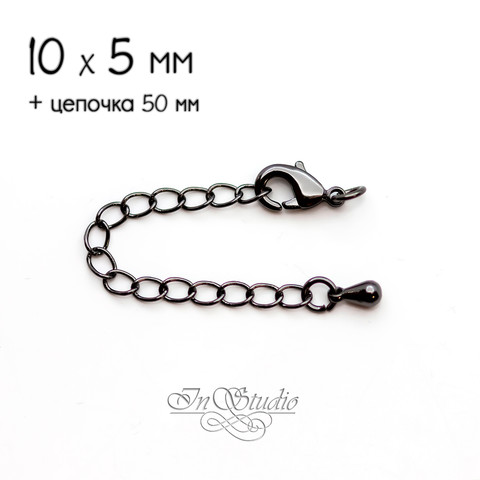 Замочек карабинчик МИНИ с удлиняющей цепочкой 10х6 мм черный родий