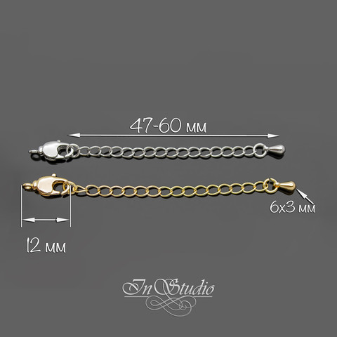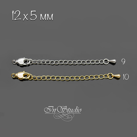 Карабин с удлинителем цепочкой 12х5 мм концевик капля родий и позолота