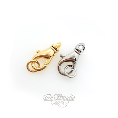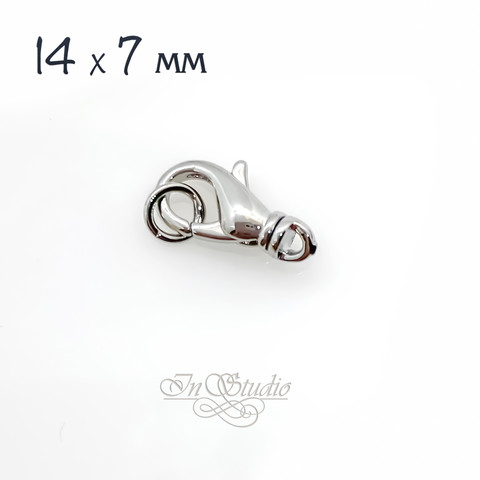 Замок карабин лобстер родий 14х7 мм Южная Корея