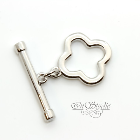 Замок застежка тогл клевер 14 мм родированый