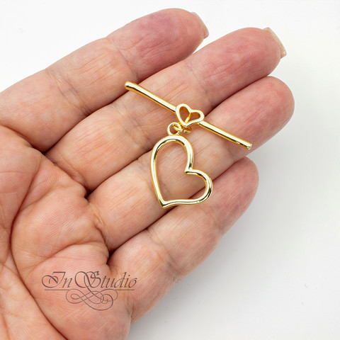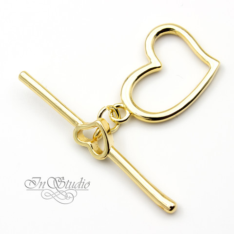 Замок для создания бижутерии тогл сердце 20 мм позолота