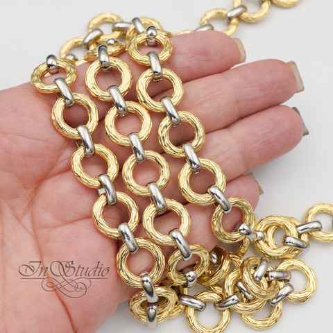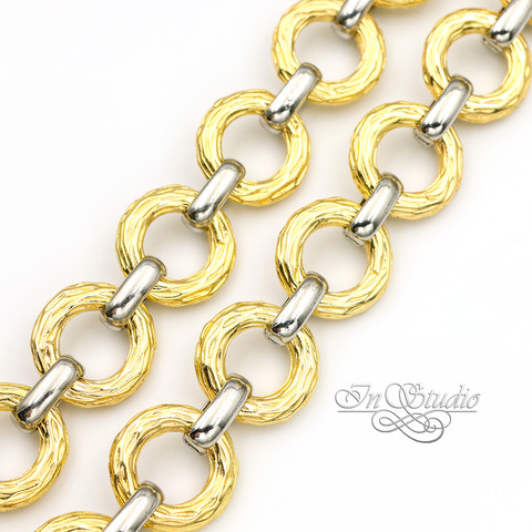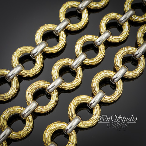 Фактурная позолоченная цепочка биколор для изготовления украшений.