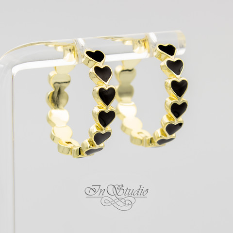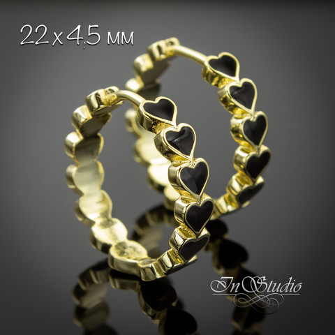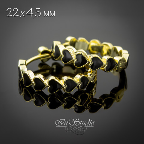 Швензы конго Сердечки 22х4,5 мм черная эмаль позолота