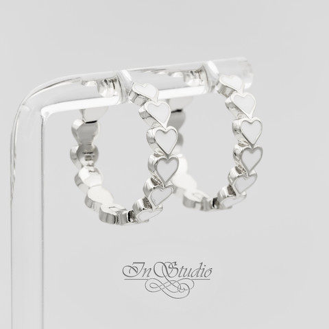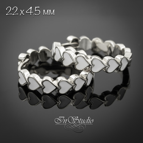 Швензы конго Сердечки 22х4,5 мм белая эмаль родий