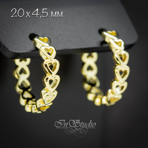 Швензы конго для сережек Сердечки 20х4,5 мм покрытые позолотой