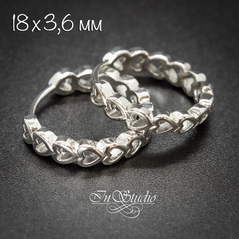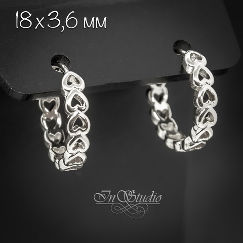 Швензы конго для сережек Сердечки 18х3,6 мм родированные