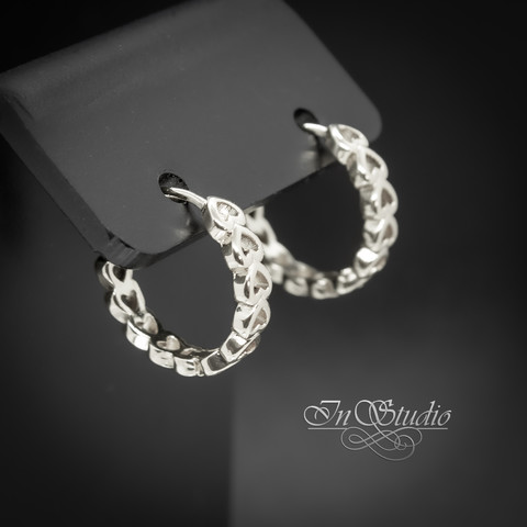 Выполнены в форме колец (бубликов) состоящих из цепочки миниатюрных сердец соединенных друг с другом.