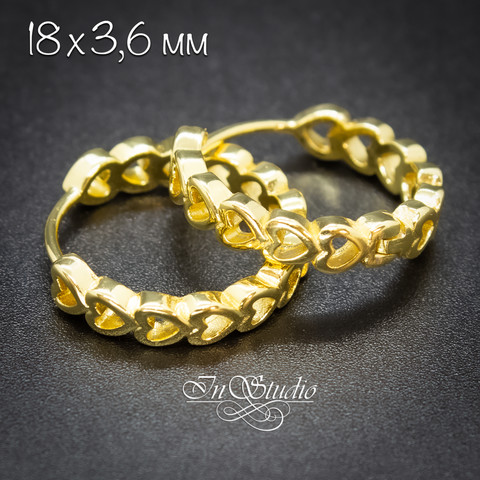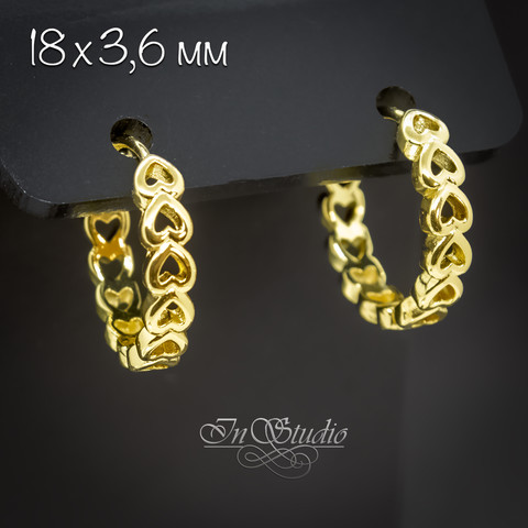 Швензы конго для сережек Сердечки 18х3,6 мм позолоченные