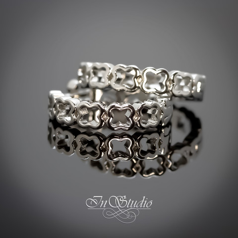 Выполнены в форме колец (бубликов) состоящих из цепочки миниатюрных цветочков четырехлистного клевера.