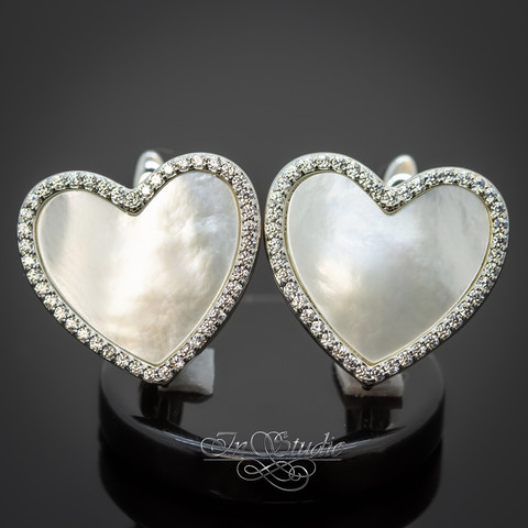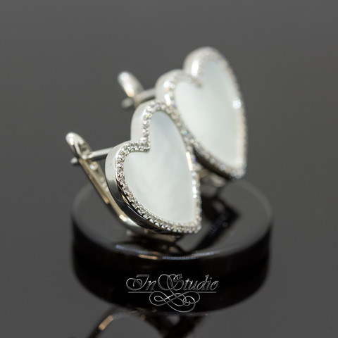 Швензы Сердце с перламутром и фианитами родий