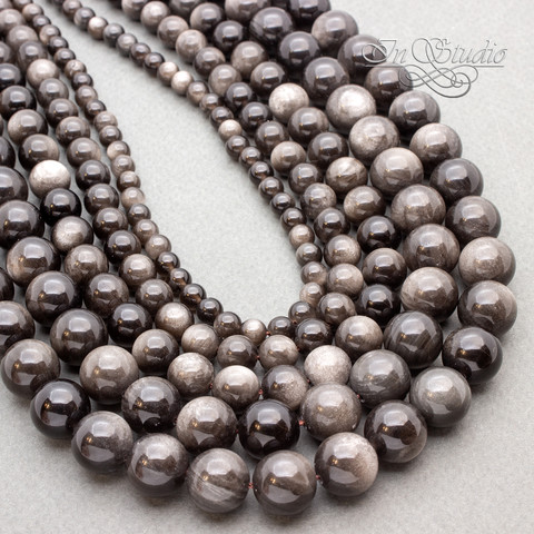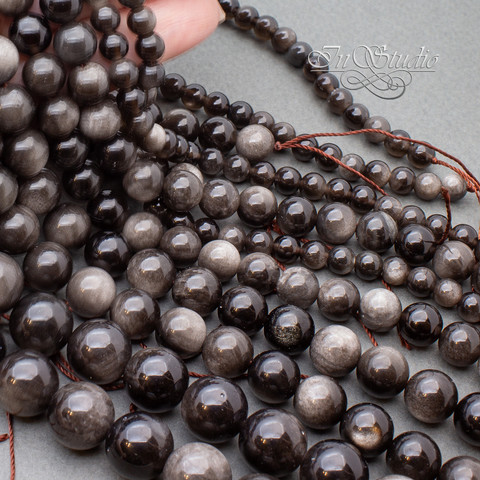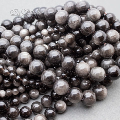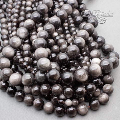 Обсидиан серебристый 6 8 10 12 14 мм бусины шар