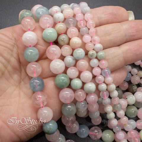 Берилл природный розовый 6 8 10 мм бусины шар