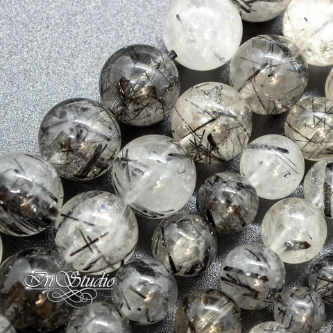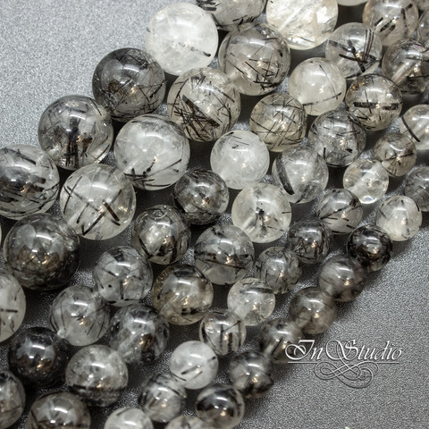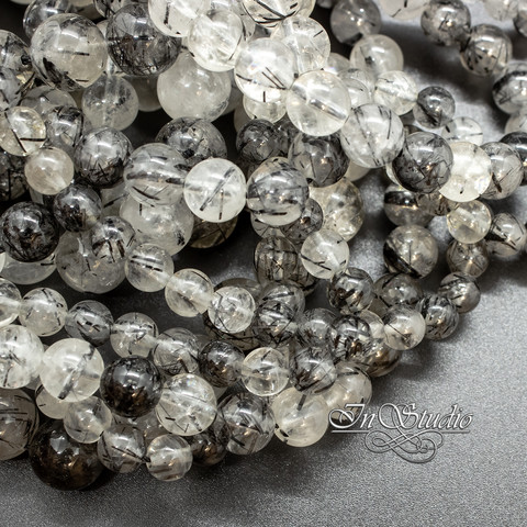Турмалиновый кварц натуральный 6 8 10 мм бусины шарики кварц с шерлом