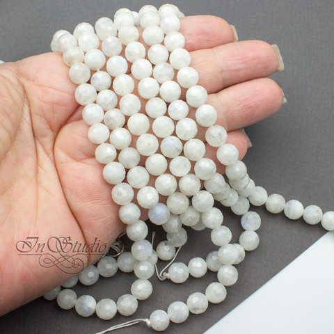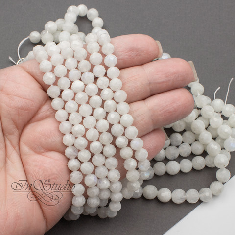 Лунный камень Адуляр природный 6 8 мм бусины шарики с огранкой люкс качества