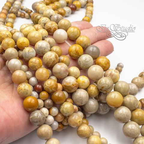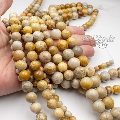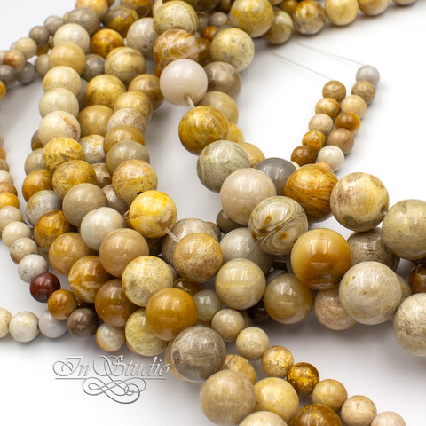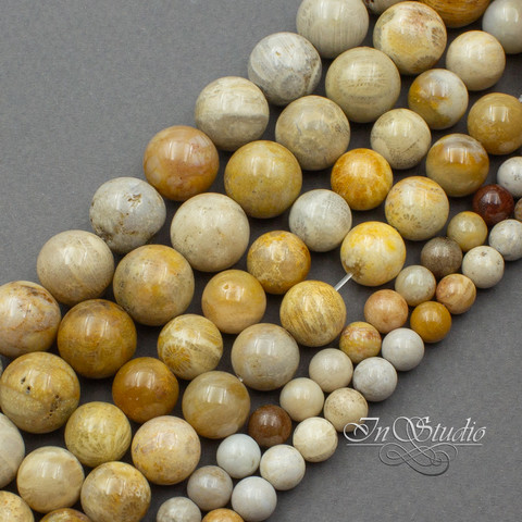 Коралл желтый окаменелый 6 10 12 мм бусины шарики