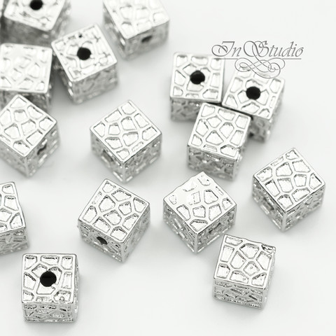 Металлические бусины кубики 6 мм родий с фактурным узором