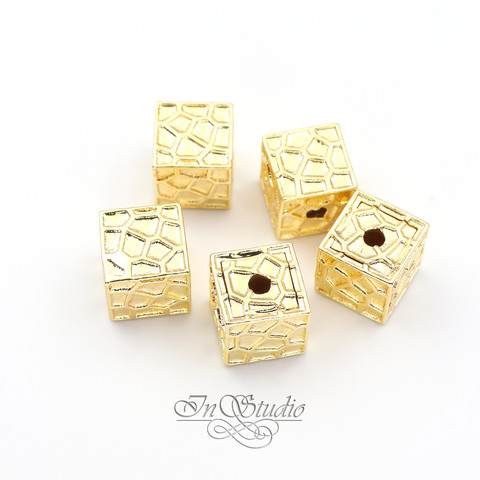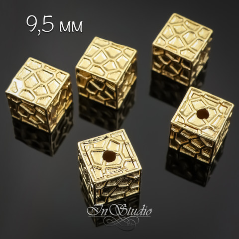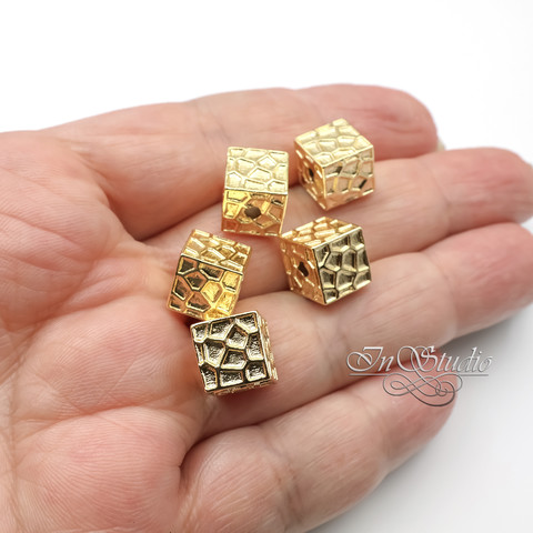 Металлические бусины 9,5 мм фактурные кубики позолота