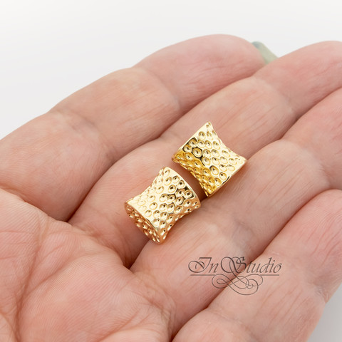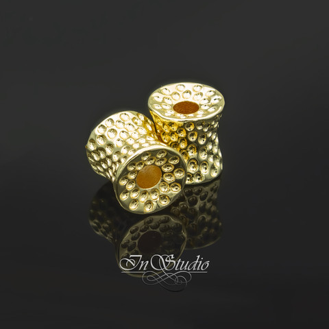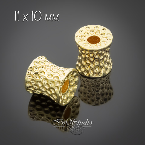 Бусина вогнутый фактурный цилиндр 11х10 мм позолота